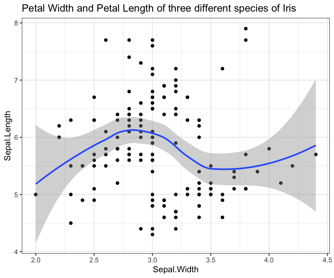 ) + geom_point() + geom_smooth() + # this is the end of the bare minimum plot